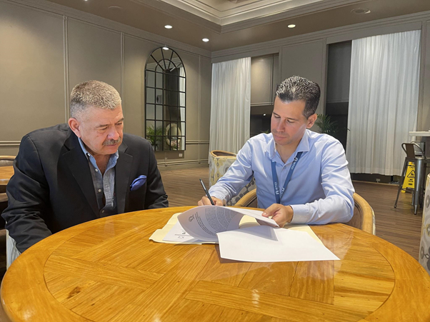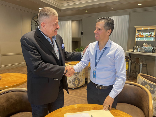 En la Foto consta el MSC. Jorge Alvarez, presidente de la Fundación Gracias a Dios y el Dr. Oscar Alejo, rector del ISTICI.